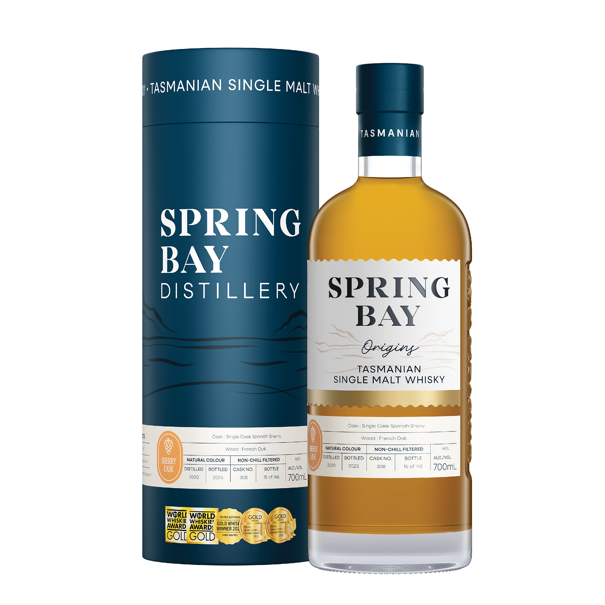 Spring Bay Distillery’s approach to making single malt whisky began in 2015, ensuring every part of the process has the highest quality application that can be achieved. The use of premium Tasmanian barley, the quality of the wash, the distilling, the careful selection of casks, and importantly, using arguably the best water in the world – a blend of East Coast Tasmanian sweet rainwater and the soft sea air of Spring Bay.